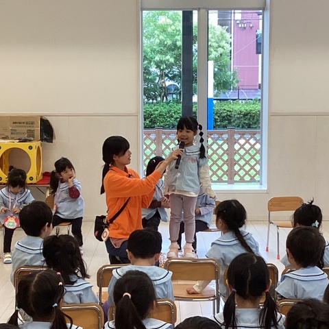 10月の誕生会がありました。 名前や何歳になったかを聞かれると、嬉しそう