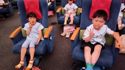 プラネタリウムでは惑星の話や、星座の話、七夕の話を聞きました。惑星が迫ってくるような場面や、星座が映し出される場面など映像が変化する度に「わーっ!!」と大興奮で楽しんでいました。