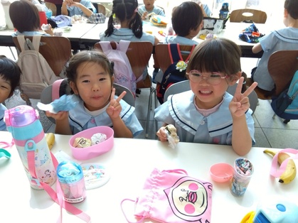 「からあげと、しゃけと、ゆかり!!」「オムライスでした~」とおにぎりに好きな物を入れてもらって、とっても嬉しそうでした。準備ありがとうございました。