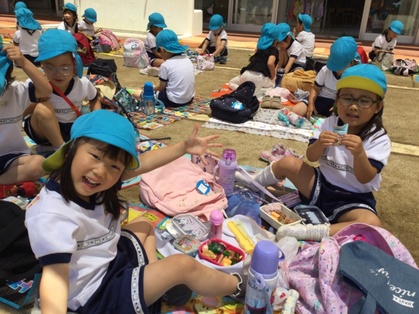 みんなが楽しみにしていたお弁当の時間です。「ゆかりおにぎりだよ!」「タコさんウインナー入ってるんだ」と、お弁当に入っているものを嬉しそうに教えてくれましたよ♪みんなニコニコで美味しそうに食べていました♪