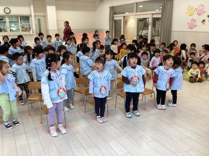 きりん組のみんなから『勇気100%』の歌のプレゼントもありました。みんなが知っている歌だったので、他のクラスの子たちもノリノリで歌ってくれました。