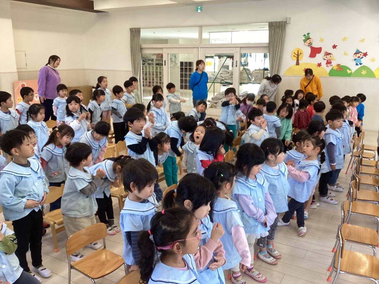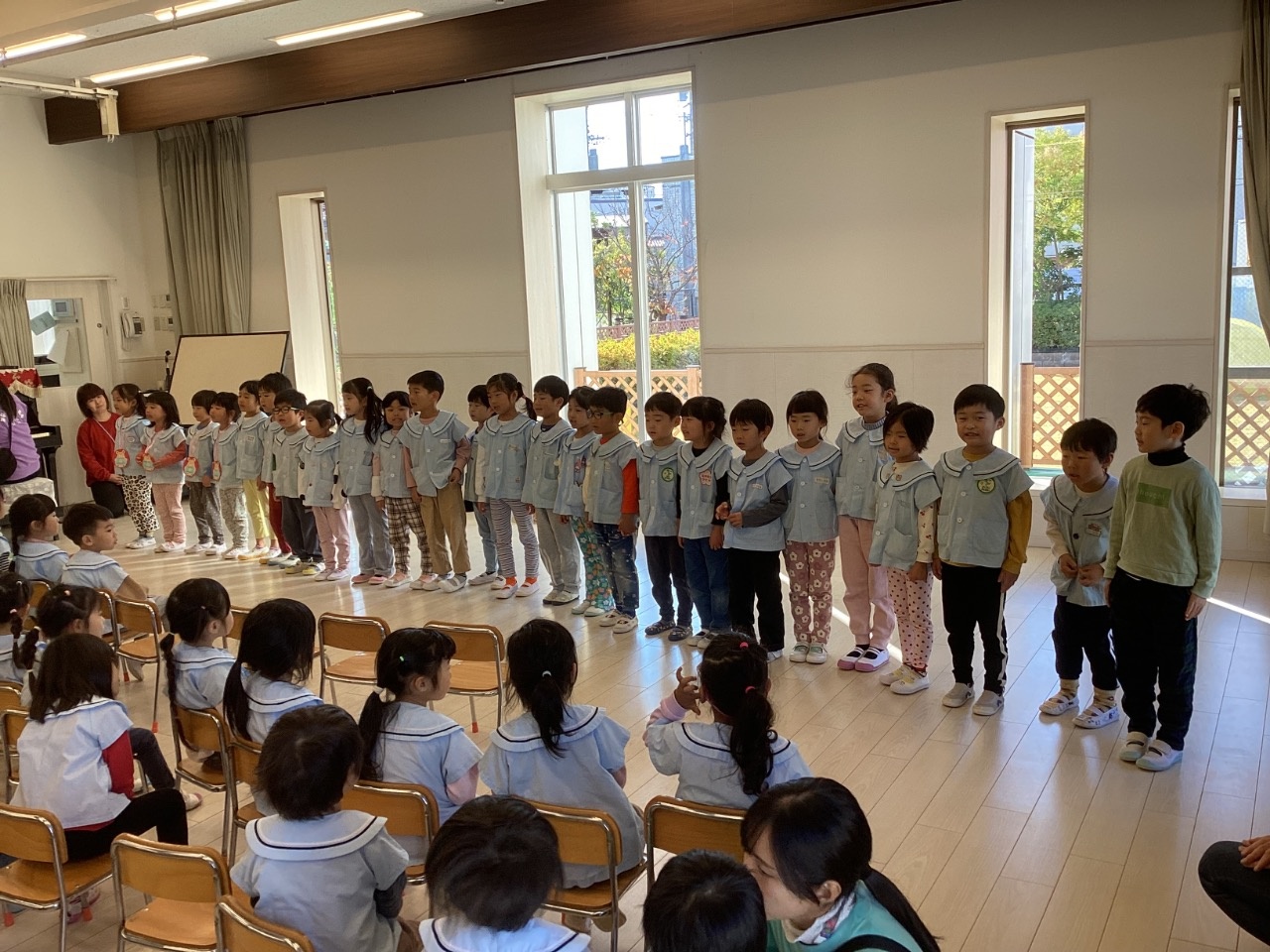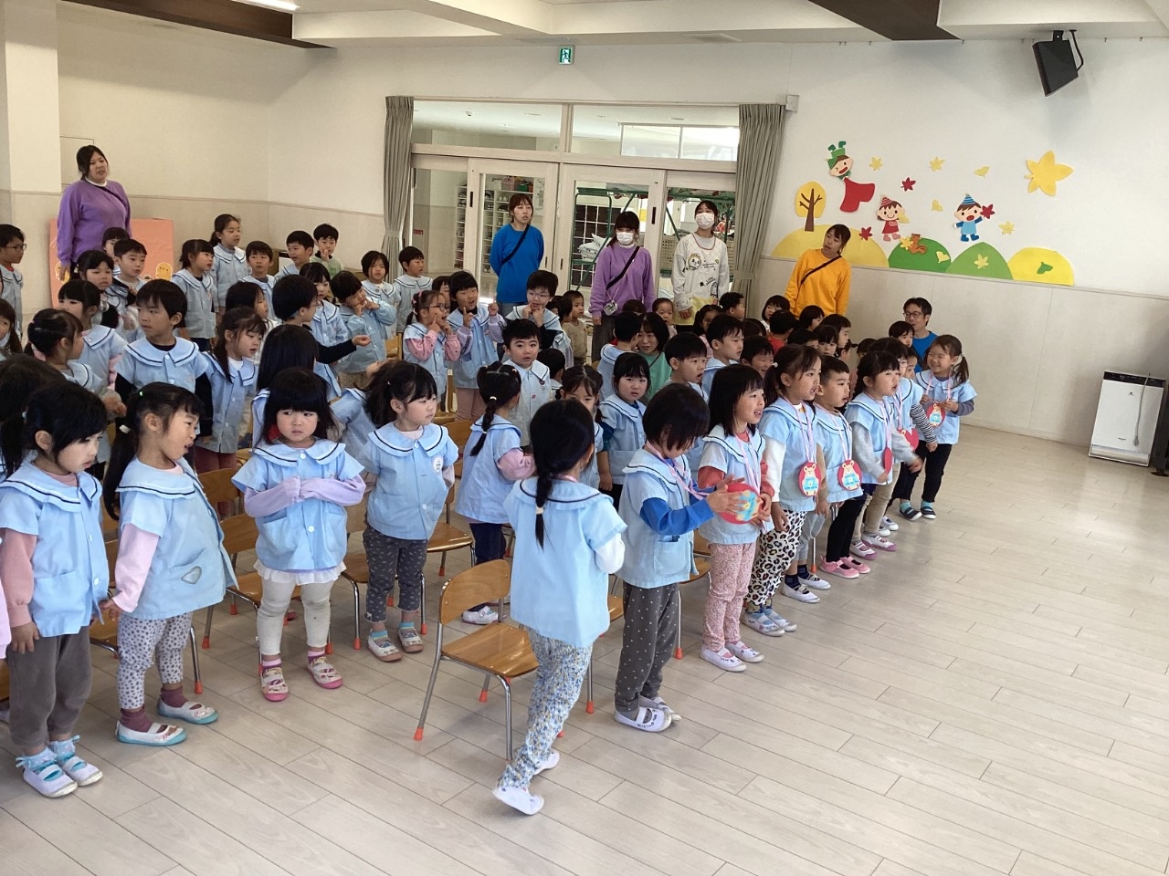 最後は11月のうた『どんぐりころころ』をみんなで歌って誕生会はおしまい。