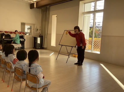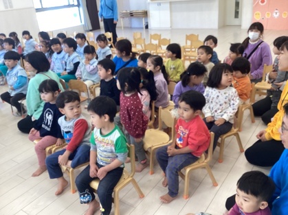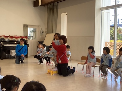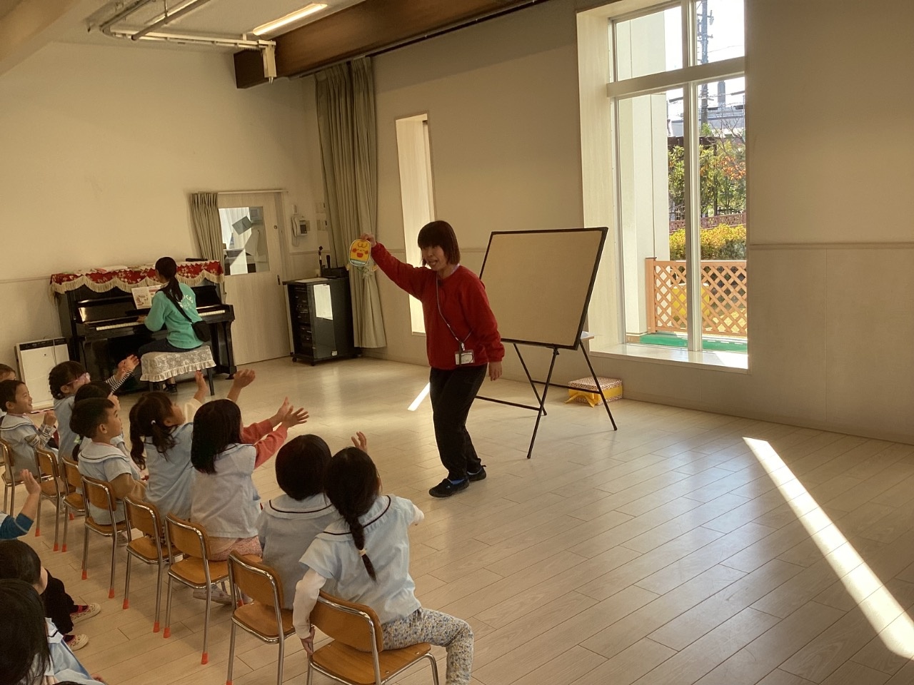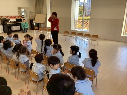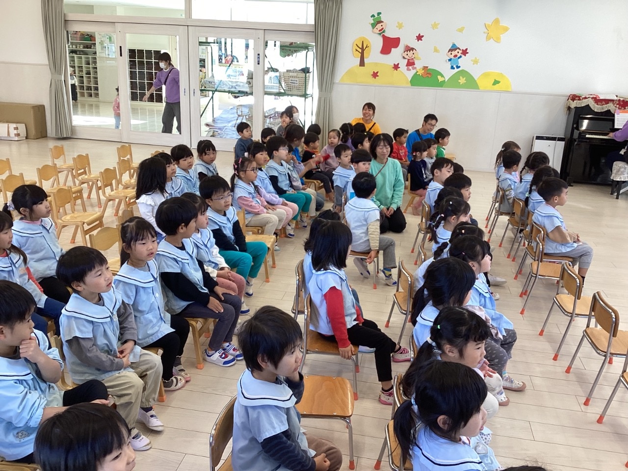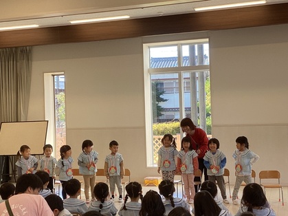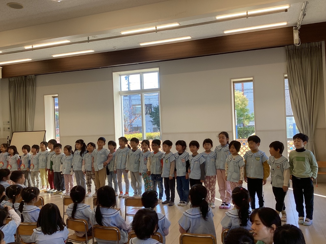 最後は11月のうた『どんぐりころころ』をみんなで歌って誕生会はおしまい。