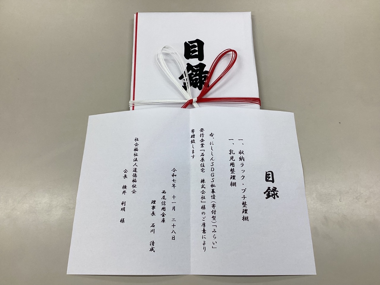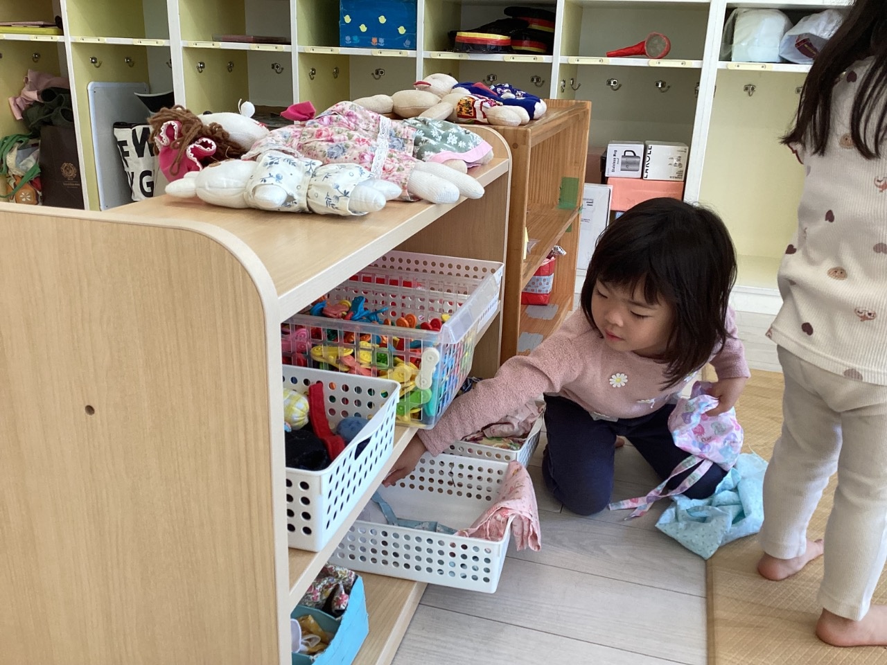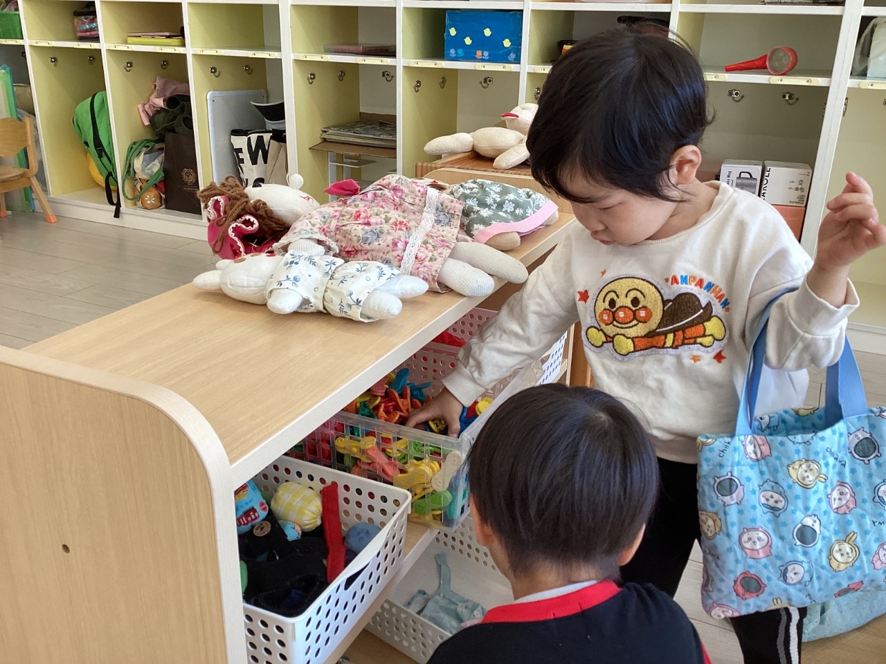 贈呈式を行いました 石原住宅株式会社さんと西尾信用金庫さんから、室内用の整理棚を頂きました。 うさぎ組と、りす組に持っていき、棚を出すと「わぁ〜」と子どもたちは喜んでいました。 早速、玩具を棚に入れてみました。 前からも後ろからも取り出しやすく、子どもたちも使いやすそうです。 大切に使わさせていただきます。ありがとうございました。