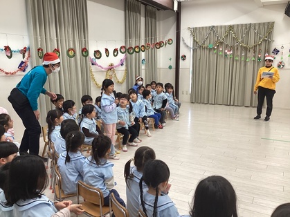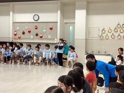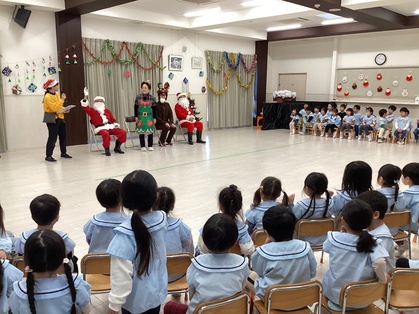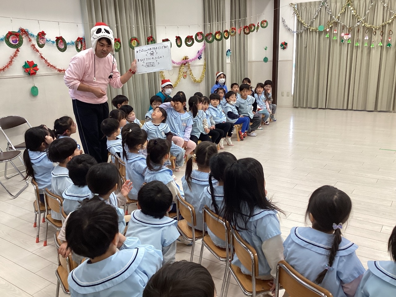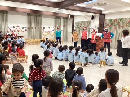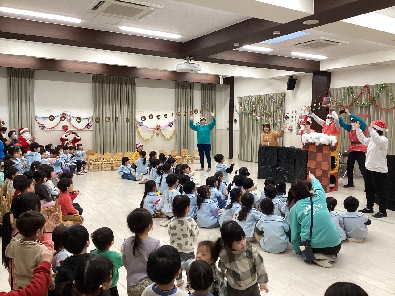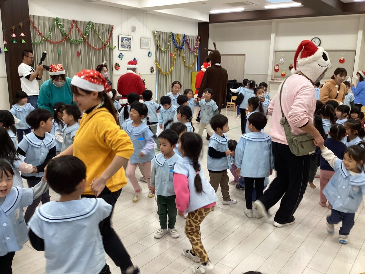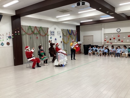 『あわてんぼうのサンタクロース』の歌に合わせて、子どもたちも一緒に歌ったり踊ったりして楽しみました。