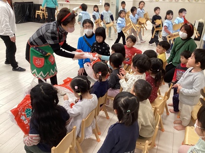 サンタさんから1人ずつ手渡しでプレゼントをもらい、嬉しそうな子どもたちでしたよ。