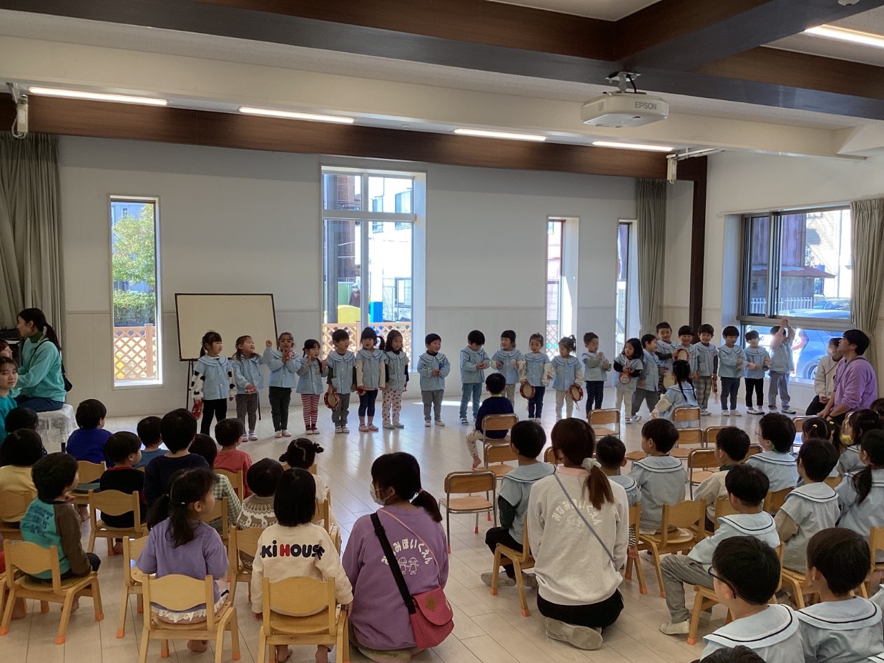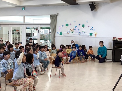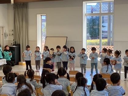 元気な歌声と共に『ゆきだるまのチャチャチャ』を演奏してくれました。チャチャチャ♪の歌詞に合わせて手拍子をしている子もいましたよ。