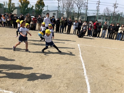 ドッジボールが始まる前に最後の作戦会議を行い、「あしをねらう」「ボールをみてにげる」などみんなで確認をして試合に挑みました。1回戦では残念ながら、どちらも負けてしまいました。敗者復活戦では、みなみほいくえん①(オレンジ)はきばひるずほいくえんに勝つことができました。みなみほいくえん②(黄色)はちゃやひるずほいくえんと戦い負けてしまいました。次、みなみほいくえん①(オレンジ)がちゃやひるず保育園と戦うことになり、みなみほいくえん②(黄色)も大きな声で応援していましたが、残念ながら負けてしまいました。どの試合も子どもたちのがんばりがすばらしく、成長をすごく感じました。悔し涙を流す子が多く、その姿に私たちも感動しました。