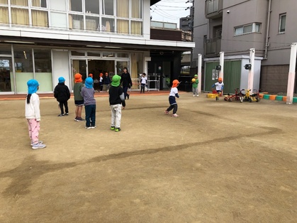 お弁当の後にはみんなで園庭に出て遊びました。子どもたちでじゃんけんをして3園合同チームを作りドッジボールをしたり、遊具で遊んだりと交流を楽しみました。