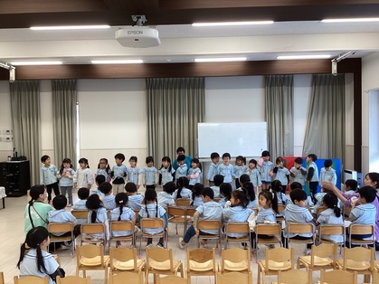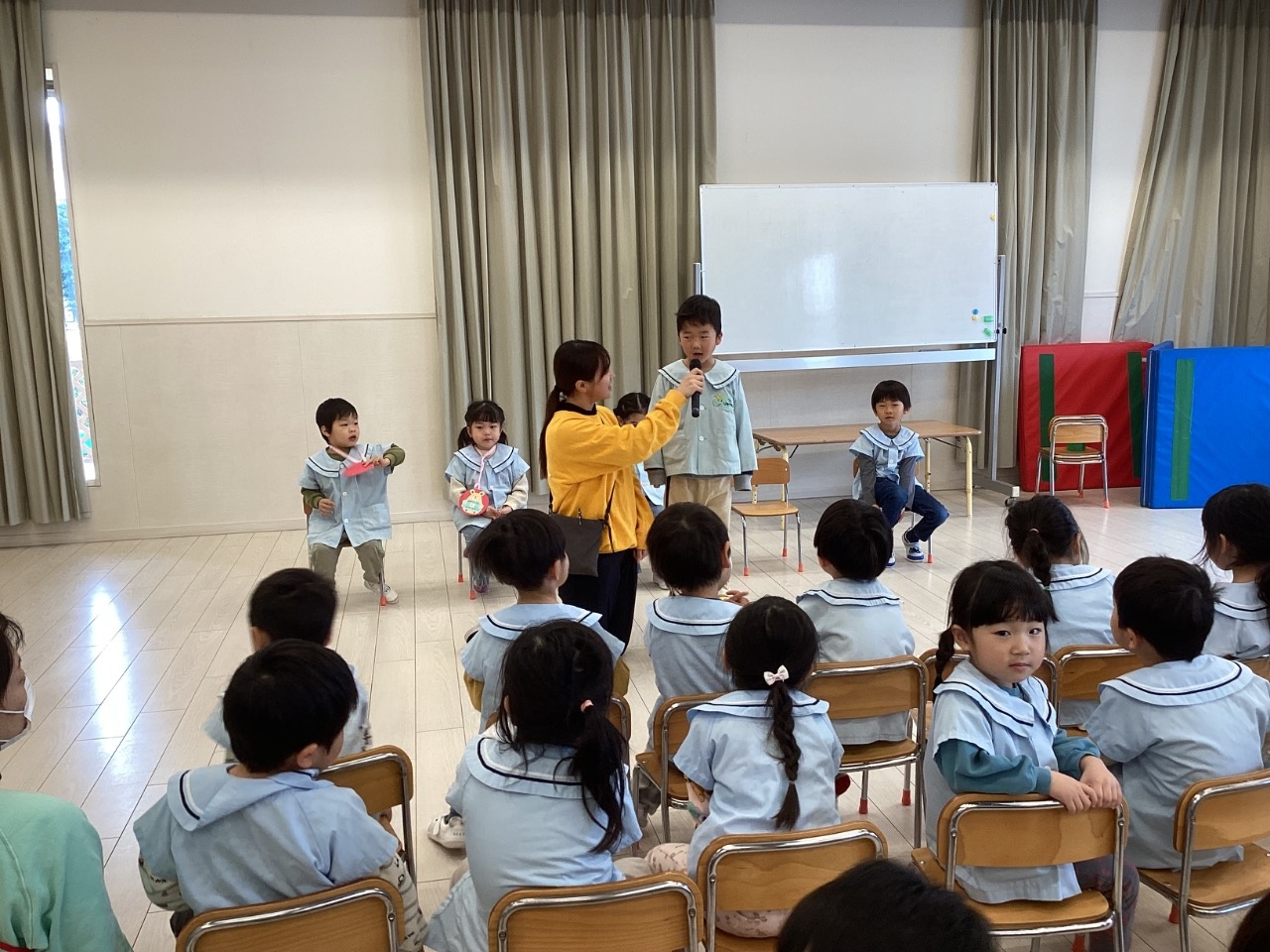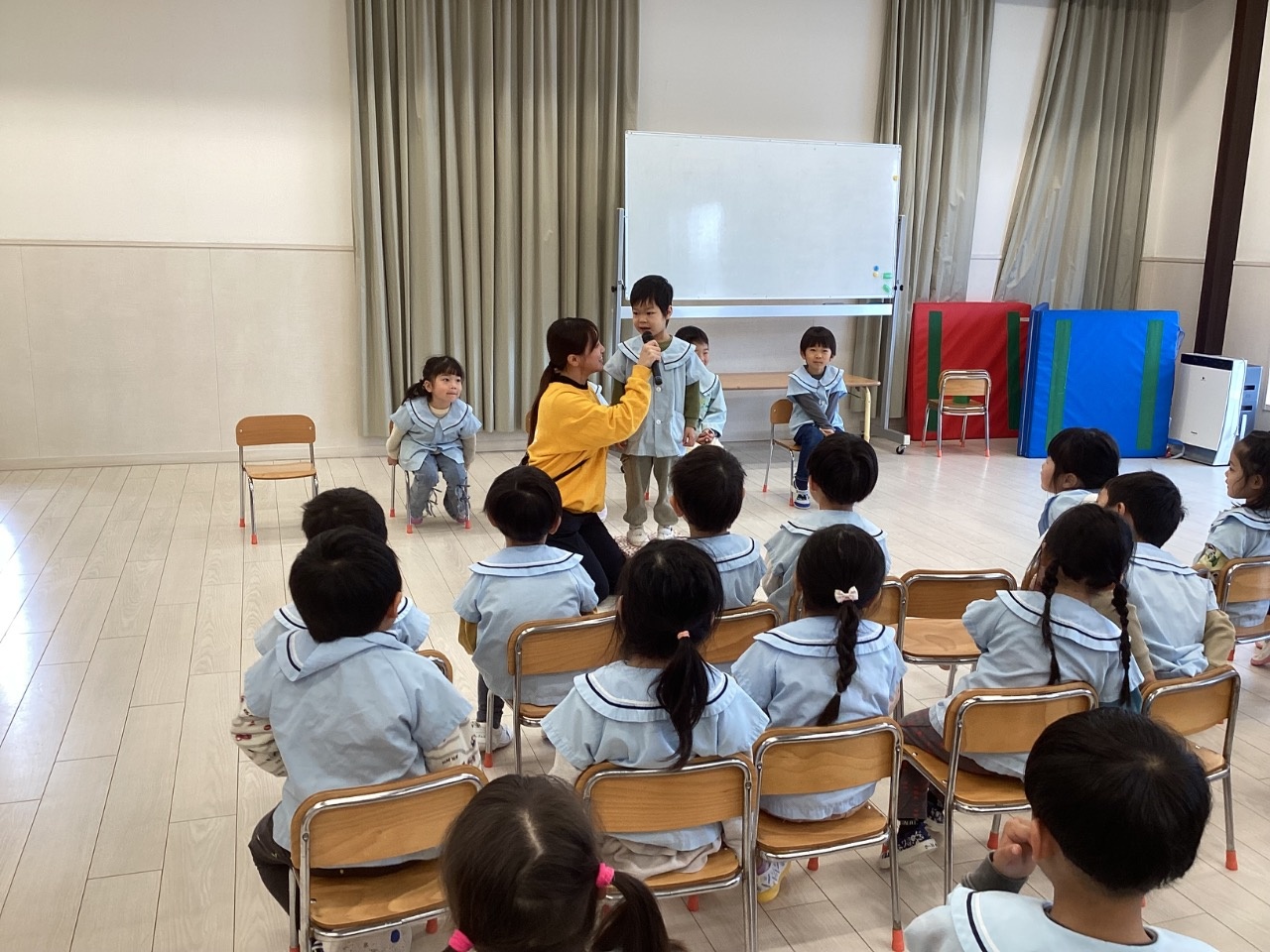 今月は5人の友だちが誕生日を迎えました。みんなの前で少し恥ずかしそうにする様子もありましたが、名前を言ったり質問に答えたりと、とてもかっこ良かったです。