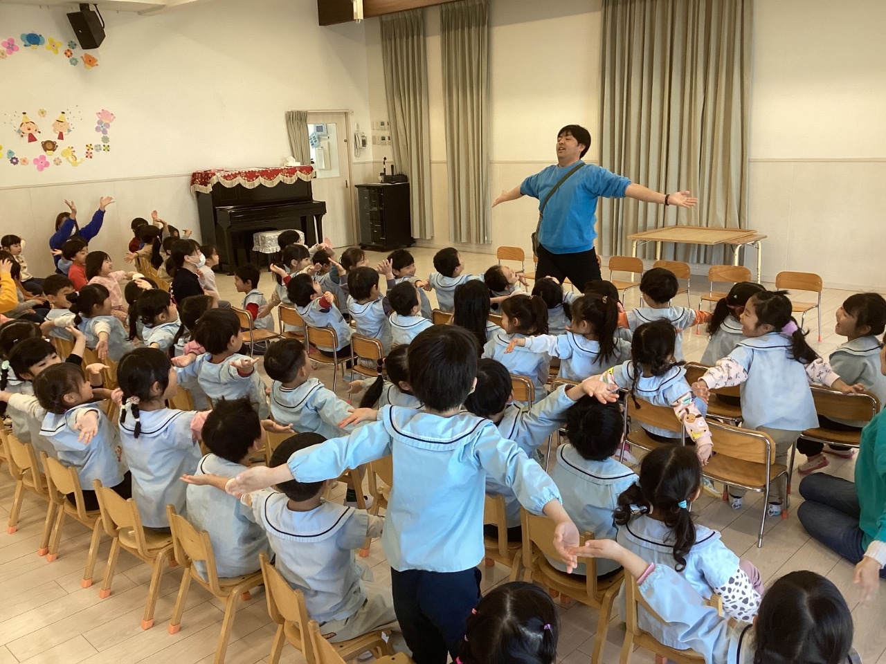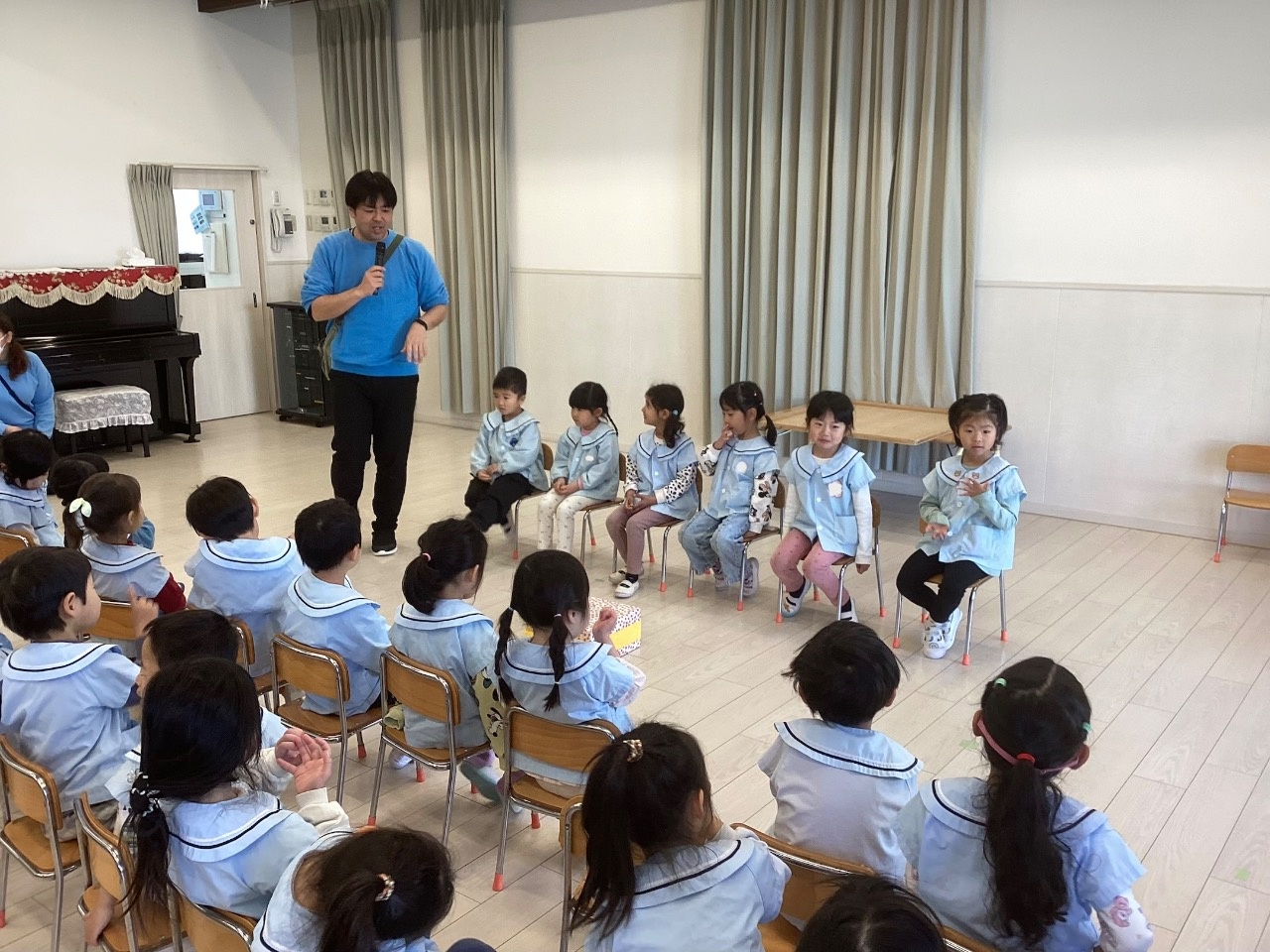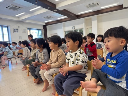 最後に、みんなで今月の歌『ありがとうの花』を歌い、心温まる歌声で誕生会が終わりました。
