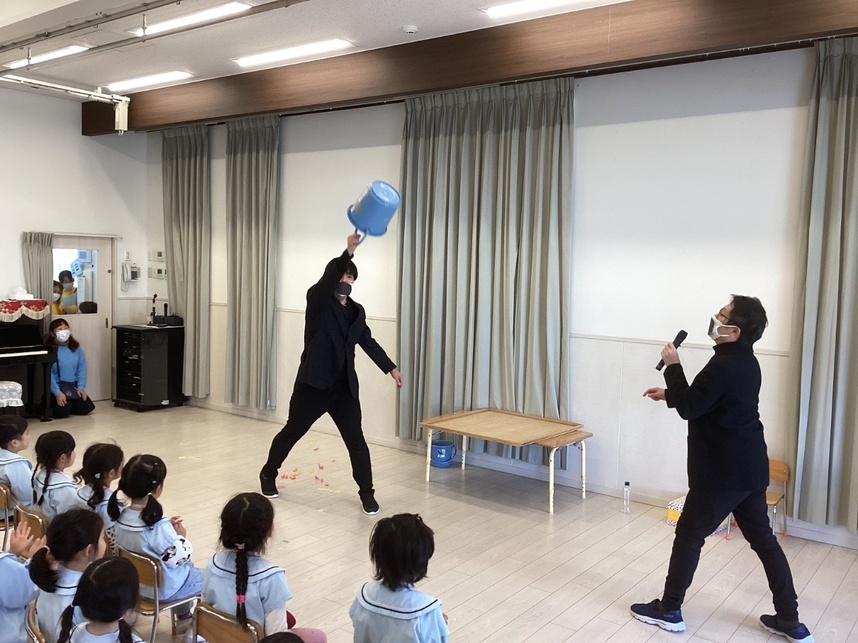 ひげおじさんに扮した保育者の面白い動きに子どもたちは大笑いでした。