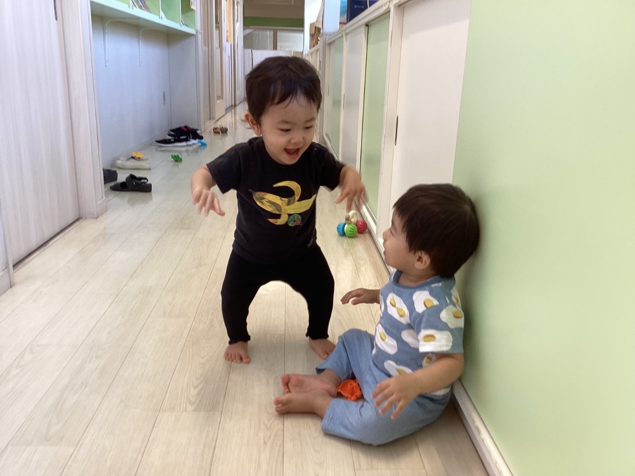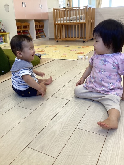 友だちとの関わりも増えてきて、子ども同士のことばでおしゃべりしたり笑ったりしています。「いないいないばあっ!」とあやしている姿はとても可愛いです。子どもたちが嬉しそうな顔を見せてくれるとほっこりします。