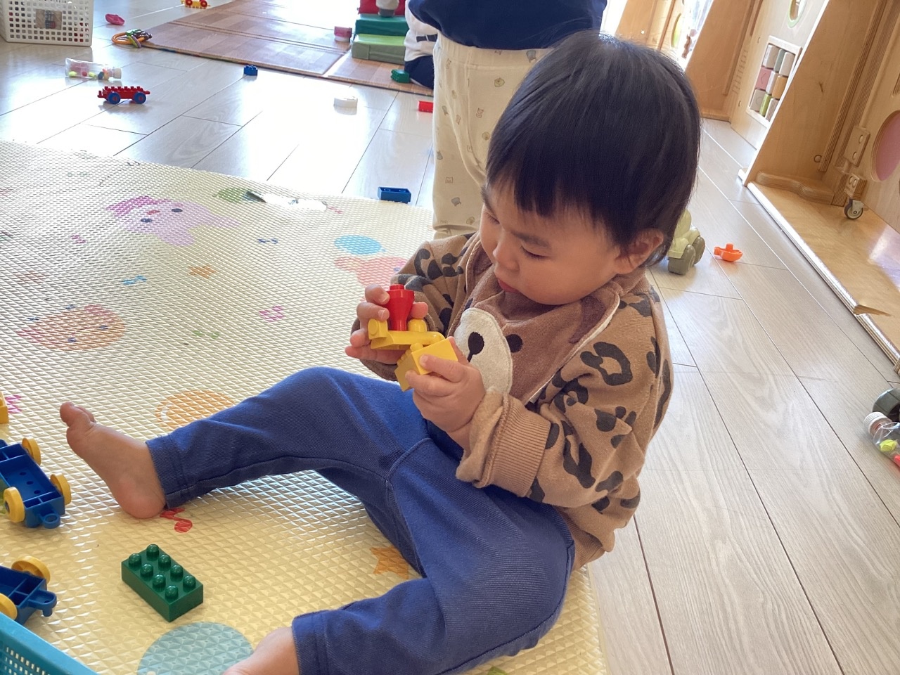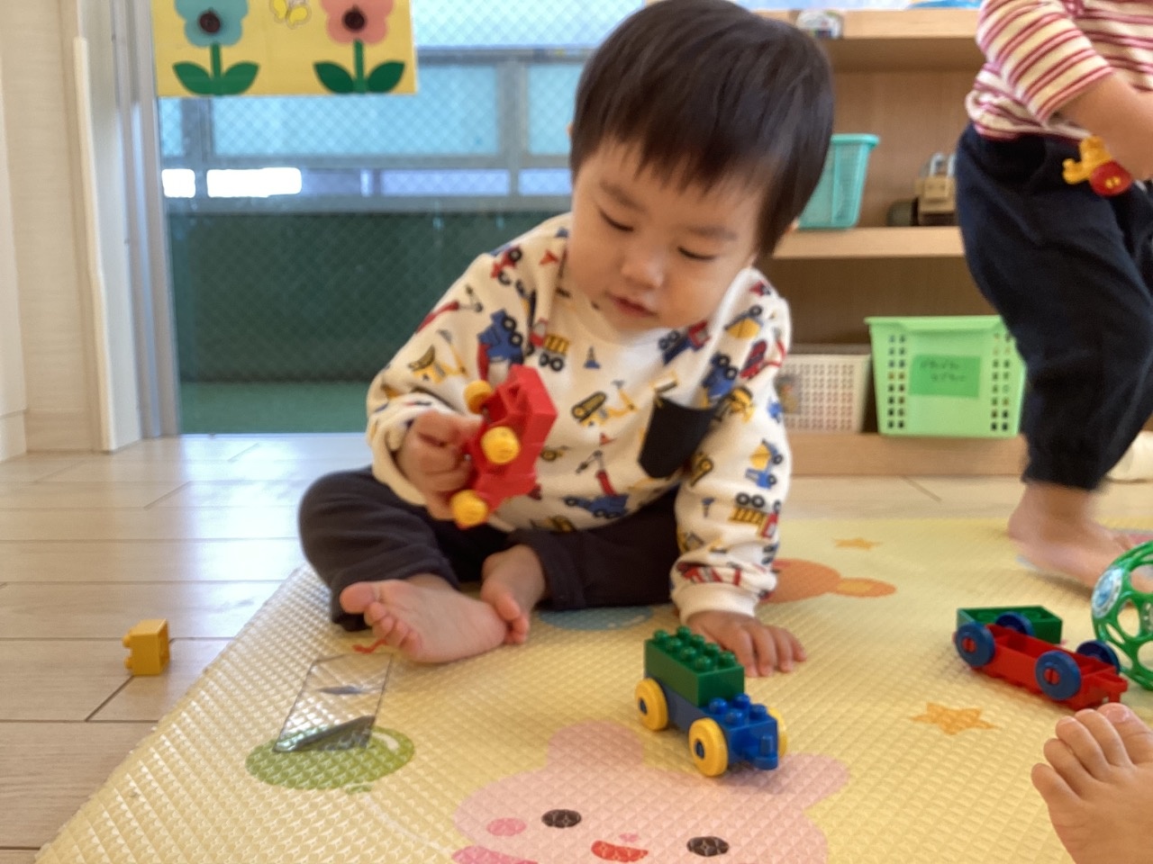 保育室ではブロックや車の玩具など好きな玩具で遊んで過ごしています。
