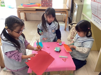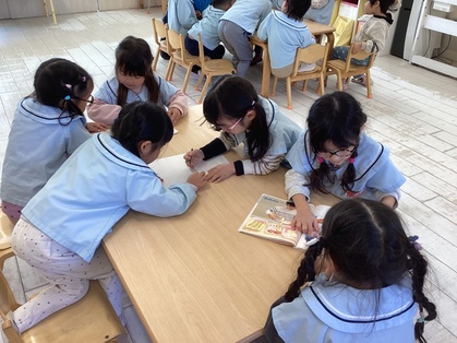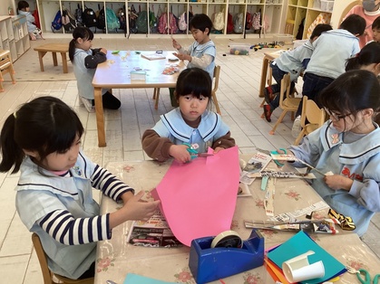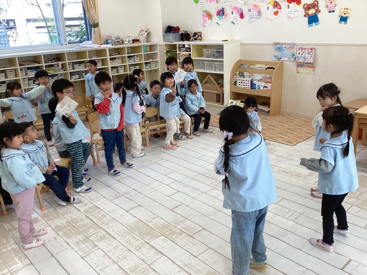 最近はアイドルごっこが流行っており、コツコツとダンスを練習する姿があります。「あいどるやるからみんなにみせたい」と、ステージが始まる事もあり、とても盛り上がっています。子どもたち同士でアイドルに必要なものは何かを考えて作ったり、応援する人、手伝う人など役割を決めたりする姿に成長を感じています。