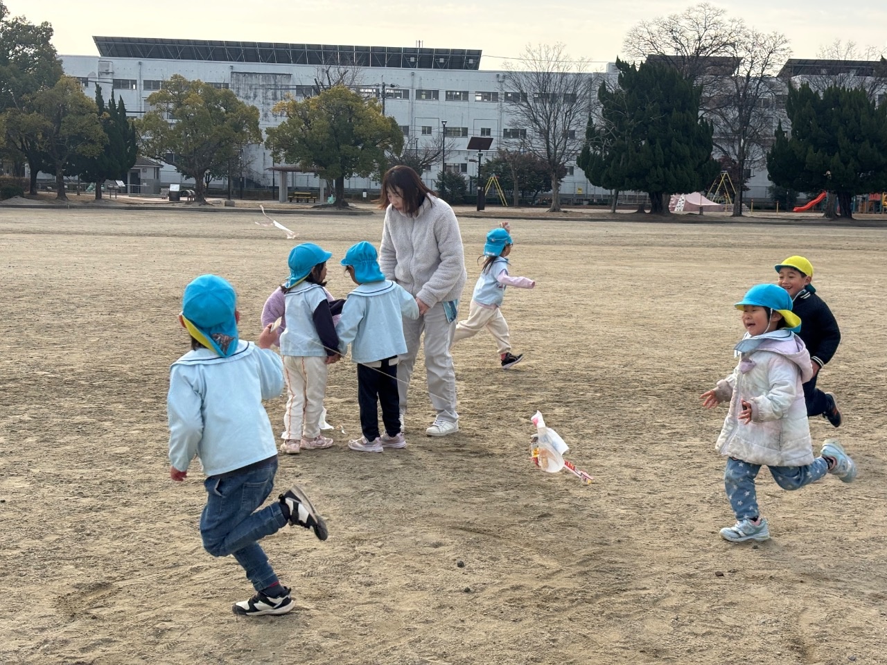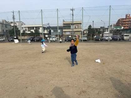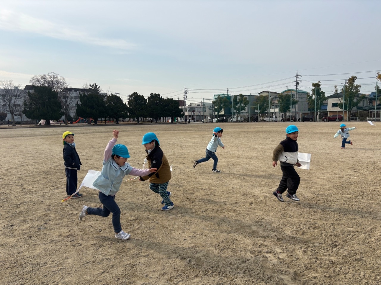 たくさん走って凧が上手く上がると、「みて!」と笑顔で見せていましたよ。何度もやるうちにコツを掴む子もいましたよ。