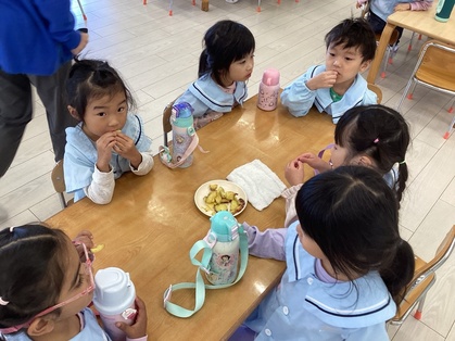 芋掘りの次の日に、自分たちで取ったサツマイモを素焼きにして食べました。