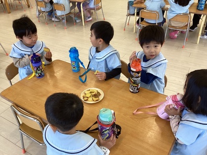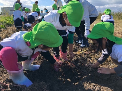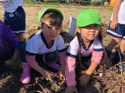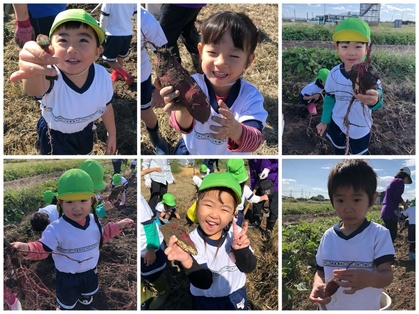 お芋が抜けると、「せんせい!ぬけたよー!」と見せに来てくれました。「まだいっぱい、おいもとるんだ!」と夢中になって沢山掘っていました。