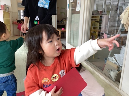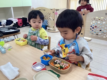 お弁当作りをしました。園内に貼ってあるお弁当のおかずを見つけに行きましたよ。