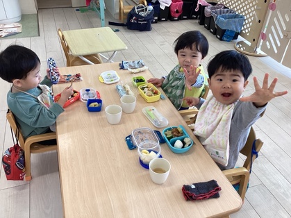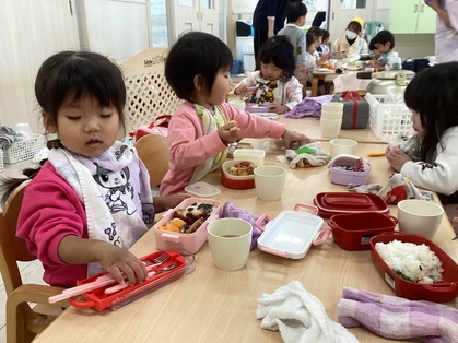 お家の人が作ってくれたお弁当を美味しそうに