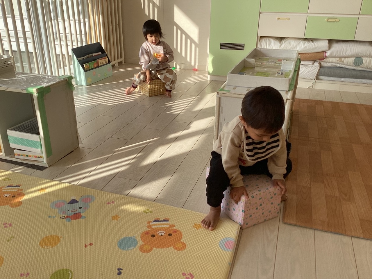 冷たい風を感じられるようになりましたが、寒さに負けず、りす組の子どもたちは、元気いっぱい遊んでいます。