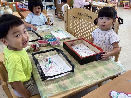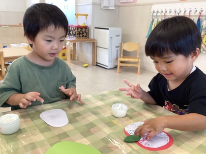 9月になってもまだまだ暑い日が続いていますね。楽しかったプールも終わってしまいましたが毎日元気いっぱいのうさぎ組のみんなです。今月は泡遊びや、フィンガーペイント、ビー玉を使った製作、糊貼りなどたくさんの製作を行いました。その時の様子を紹介していきたいと思います。汚れてもいい服の用意ありがとうございました。