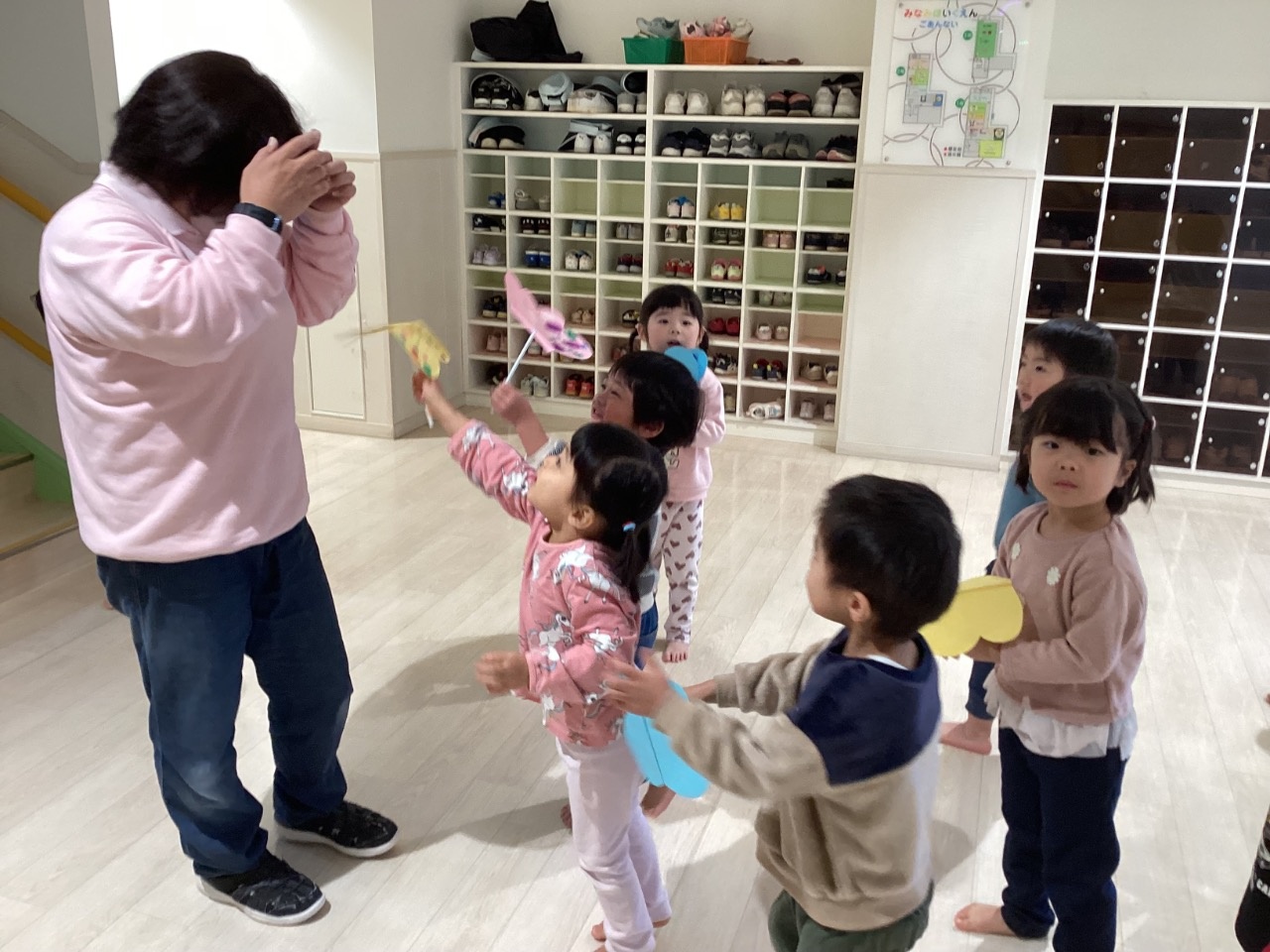 うさぎ組では「あたたかくなってきたから、ちょうちょとんでいるかな」とちょうちょに興味津々です。「ちょうちょ〜ちょうちょ〜」と歌う歌が聞こえてきます♪