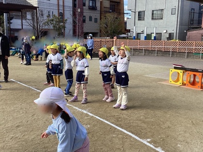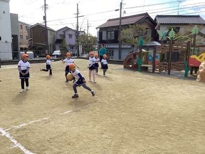 17日には豊田保育園と五条保育園の年長組のみんなでドッジボール交流会をしました。結果はどちらも全敗、、、。残念。その後、同じ小学校の子同士で集まり、一緒に歌を歌いました。小学校に行って、また会えるのが楽しみだね。