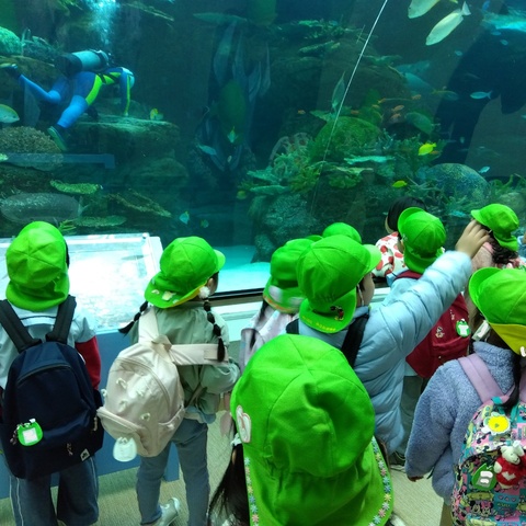 お別れ遠足で、名古屋港水族館に出かけました。 子どもたちはバスの中から
