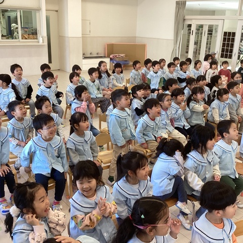 みんなで手遊びをして、楽しみにしていた誕生会のスタートです。 今月は5