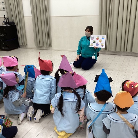 2月3日は節分ですね。 幼児クラスは、クラスごとにぷれいるうむに集まり、