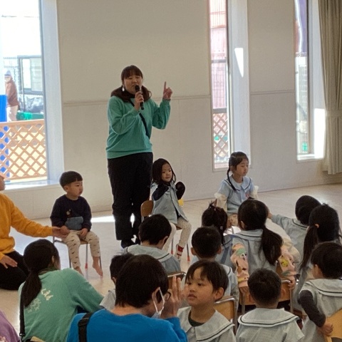 1月の誕生会が行いました。みんなで『ペンギンマークの百貨店』の手遊びを